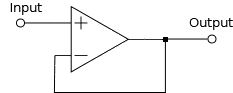 This is far and away the simplest useful configuration for an op-amp. If we feed in a 1 volt signal to the non-inverting input, we will cause the output to move positive. Without feedback the amplifier's native gain would send the output to it's maximum. But, when we add feedback from the output to the negative input, the amplifier is going to balance the inputs by moving the output up by 1 volt. This gives us a unity gain amplifier.