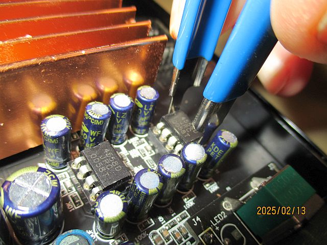 - When inserting the new chip be sure to follow the same orientation as the one you took out. These devices have no protections against improper installation.
