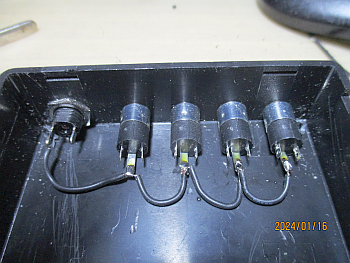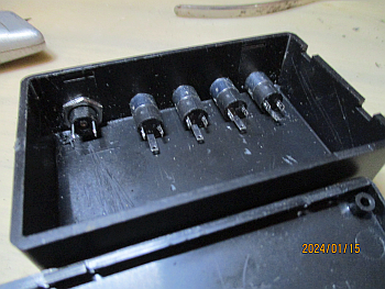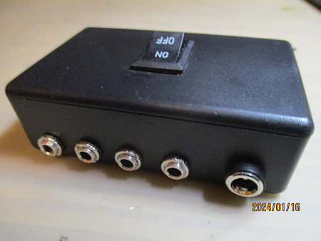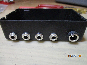 It is not uncommon to find one or two duds in a bargain bag parts purchase, making it worth the time to be extra careful. So as a final check before I start assembling the case, I will check all the connectors, switches, etc. to be sure they are all working as they should. In particular I will insert a plug into each jack to be sure it fits properly and, in this case, test the switch to be sure it opens and closes properly.Below is a photo of the case with the connectors assembled to it. Beside that is a view of the interior of the case. Please note that I've taken some care to orient the 3.5mm connectors all in the same way. This will help with the wiring task to come next.