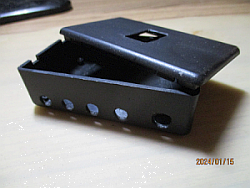 The next two pictures are the switch mounting on top of the case. If you are using a switch with the on and off positions marked, be sure to orient it so that the On position is toward the back of the case, where the connectors are.